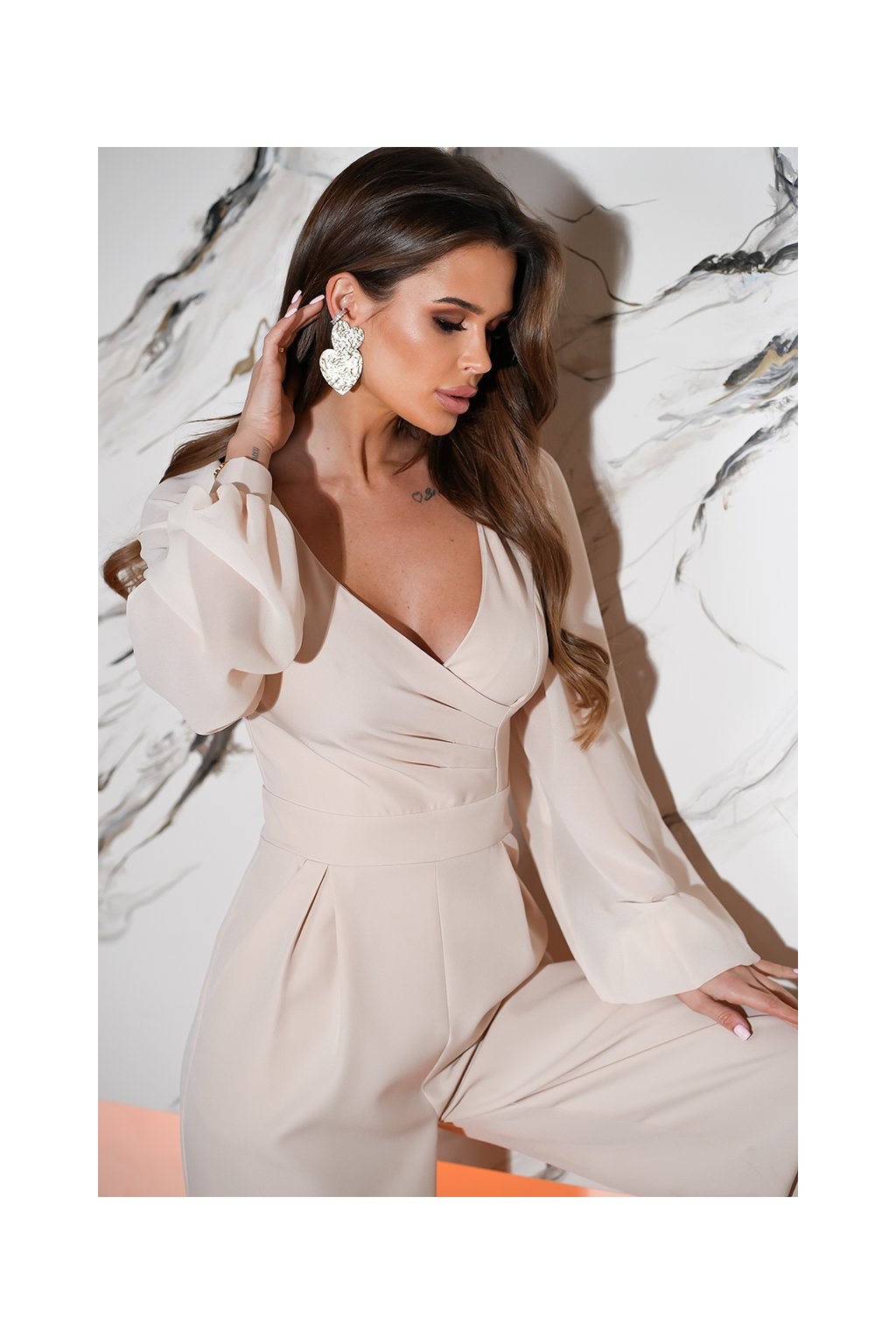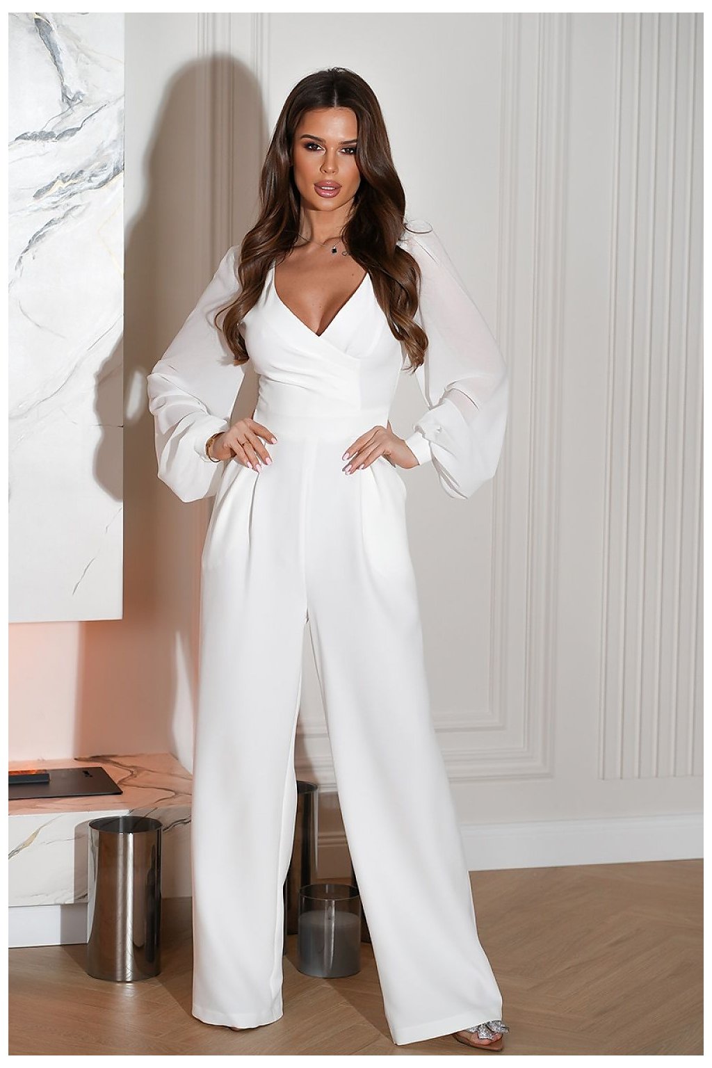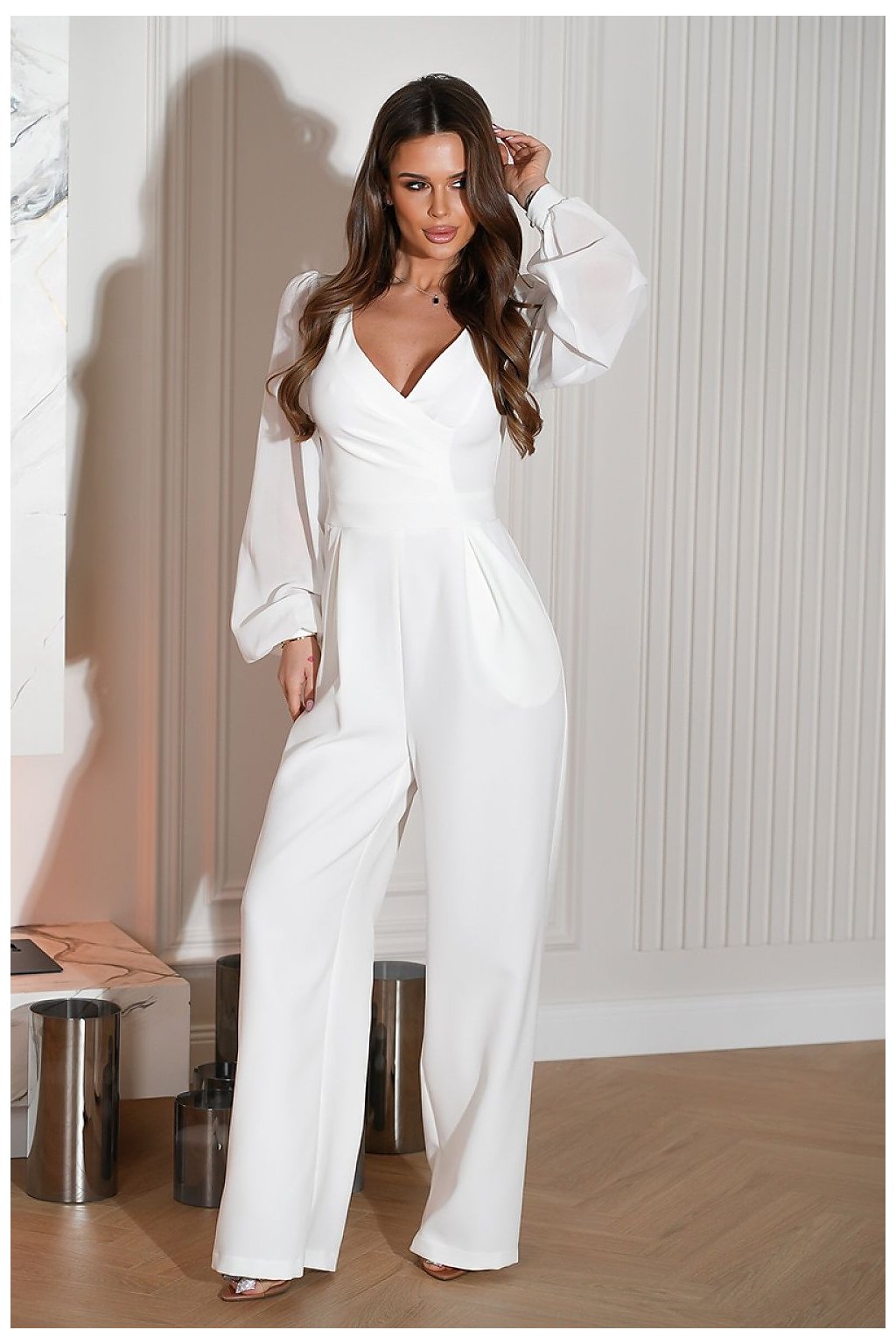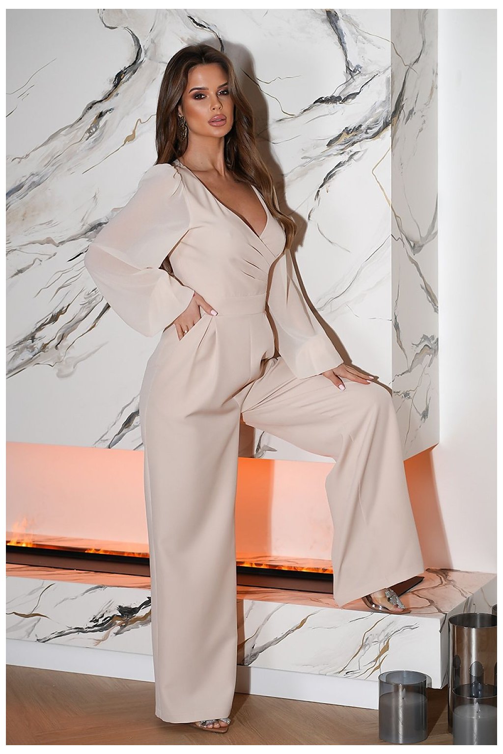 Dovoľte svojej postave rozkvitnúť v tomto overáli. Overál sa vyznačuje dlhými rukávmi, širokými nohavicami a dokonale vykrojeným pásom. Kúsok, ktorý dá vášmu celkovému outfitu dotyk luxusu a originality. Opasok nie je súčasťou produktu.