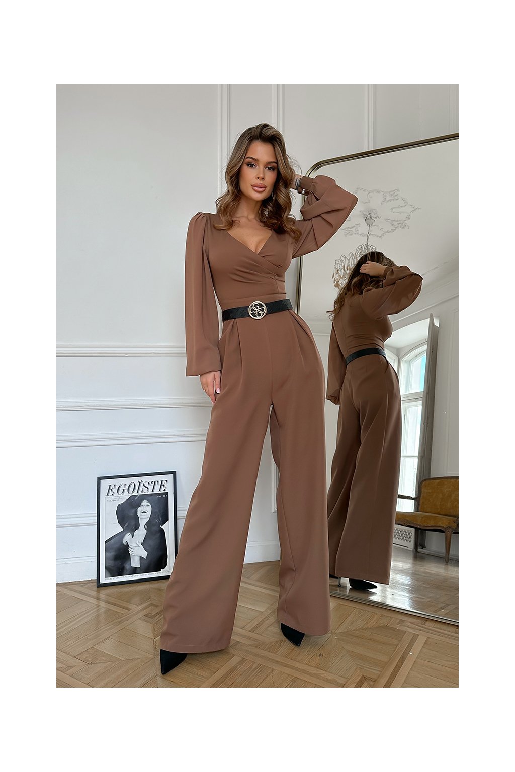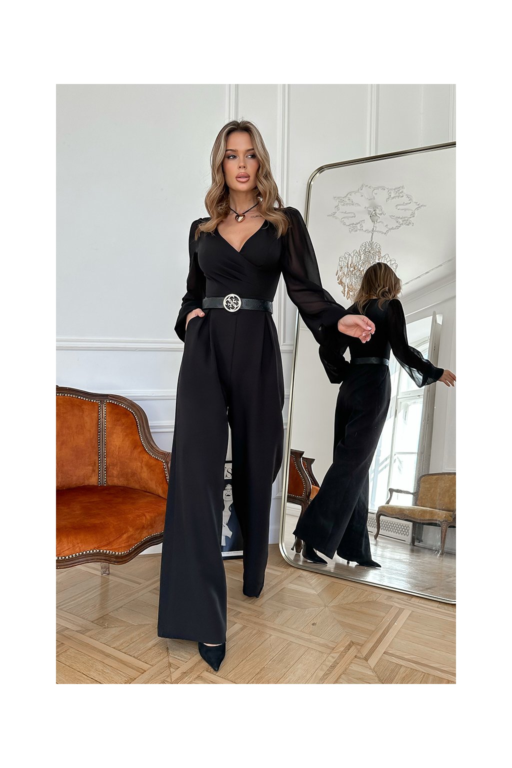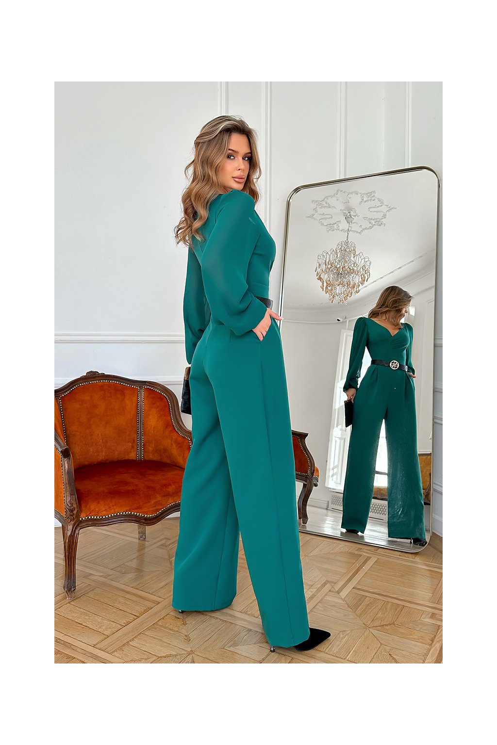 Dovoľte svojej postave rozkvitnúť v tomto overáli. Overál sa vyznačuje dlhými rukávmi, širokými nohavicami a dokonale vykrojeným pásom. Kúsok, ktorý dá vášmu celkovému outfitu dotyk luxusu a originality. Opasok nie je súčasťou produktu.