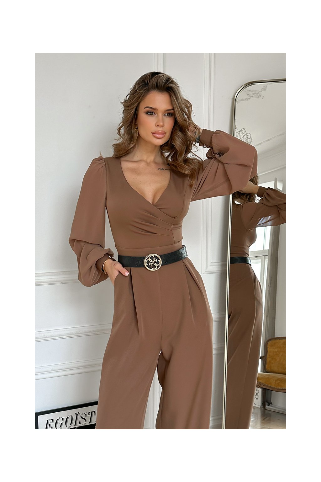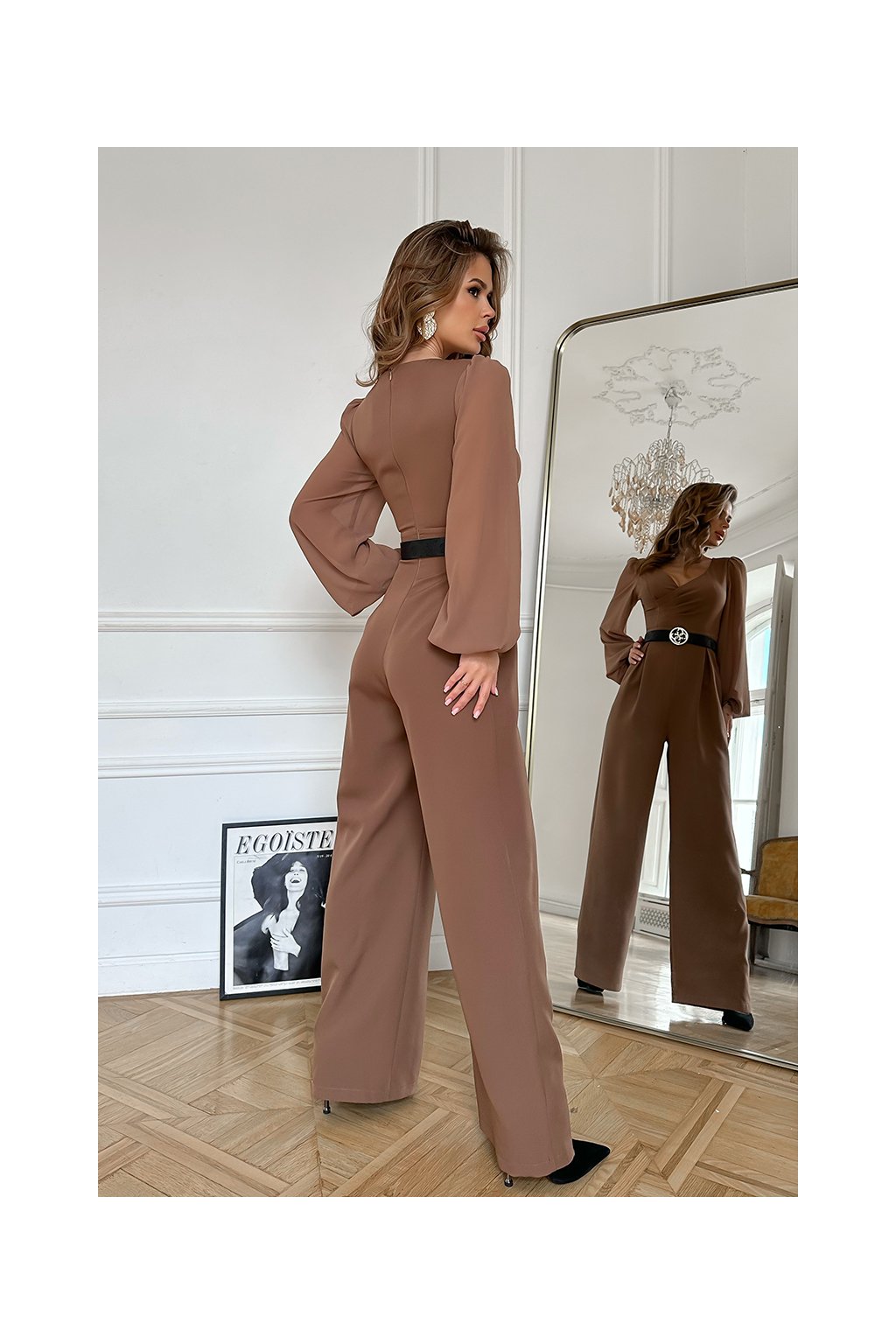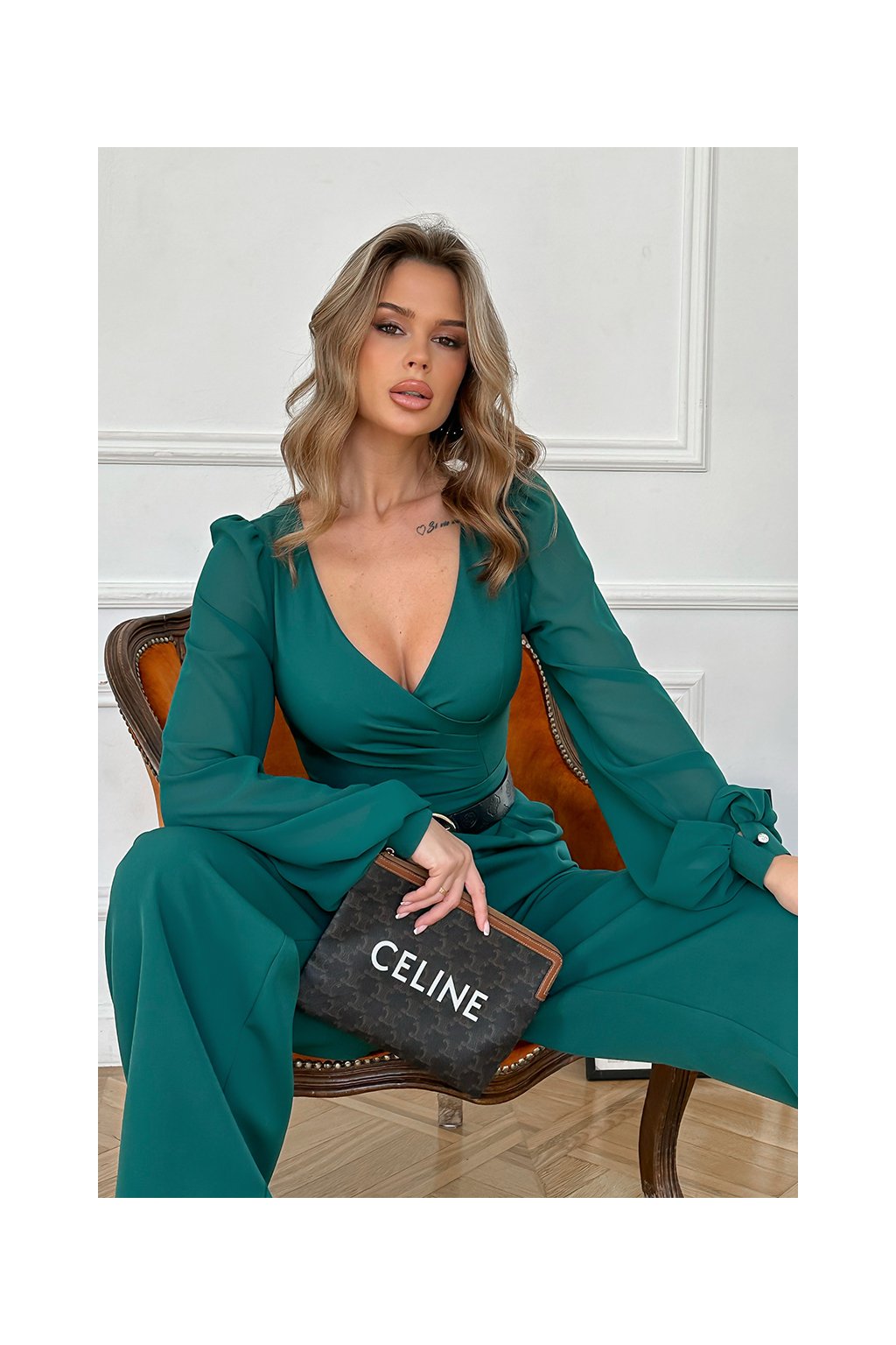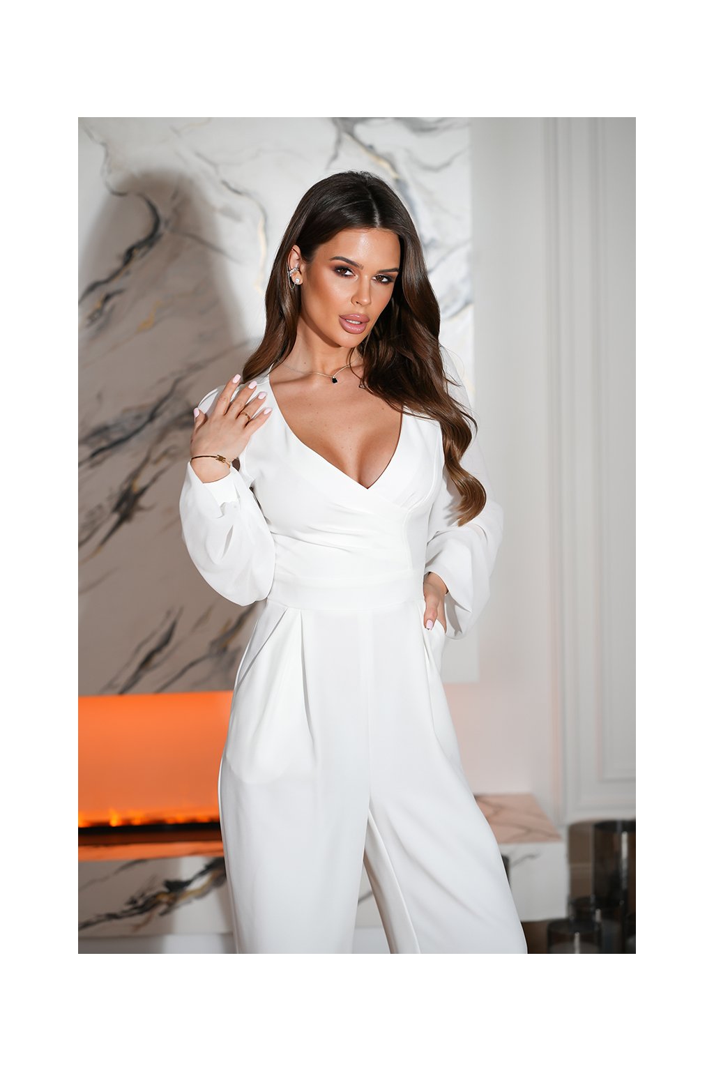 Dovoľte svojej postave rozkvitnúť v tomto overáli. Overál sa vyznačuje dlhými rukávmi, širokými nohavicami a dokonale vykrojeným pásom. Kúsok, ktorý dá vášmu celkovému outfitu dotyk luxusu a originality. Opasok nie je súčasťou produktu.